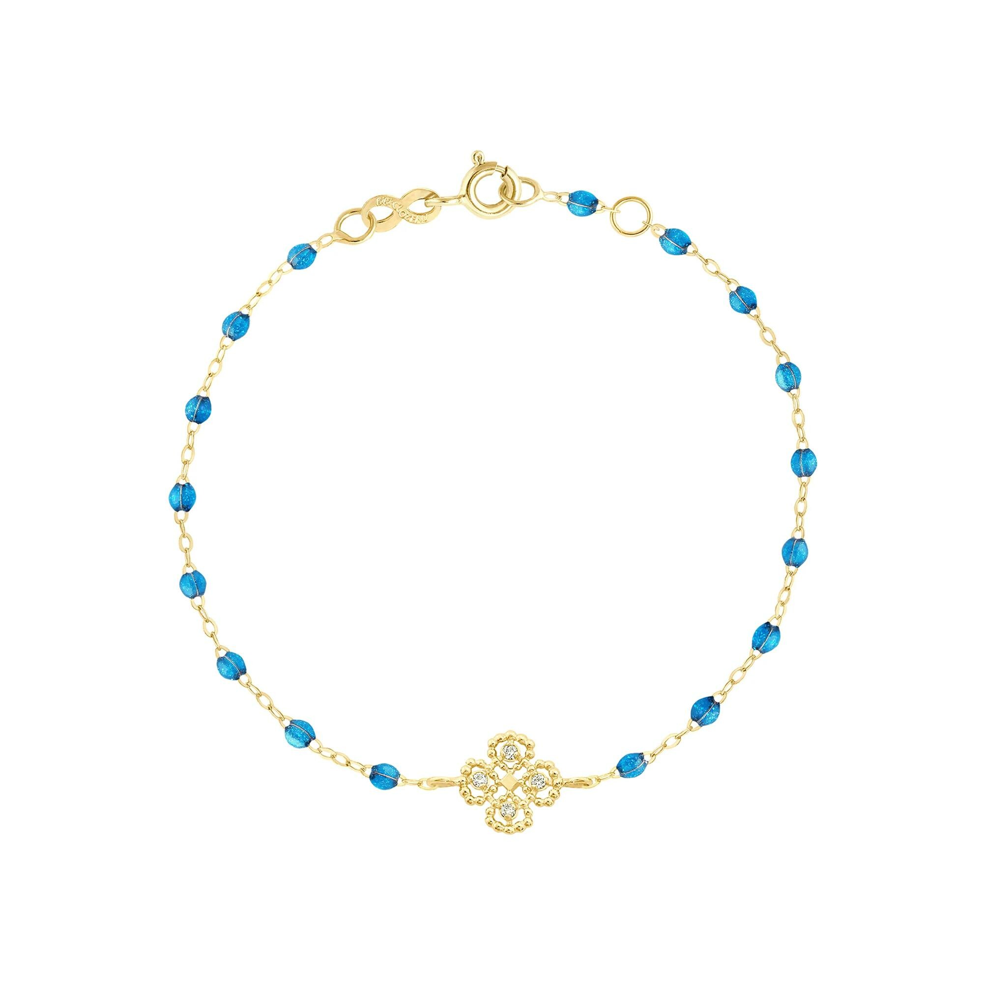 Bracelet Gigi Clozeau Lucky Trèfle en or jaune, résine azur et diamants, taille 17cm
